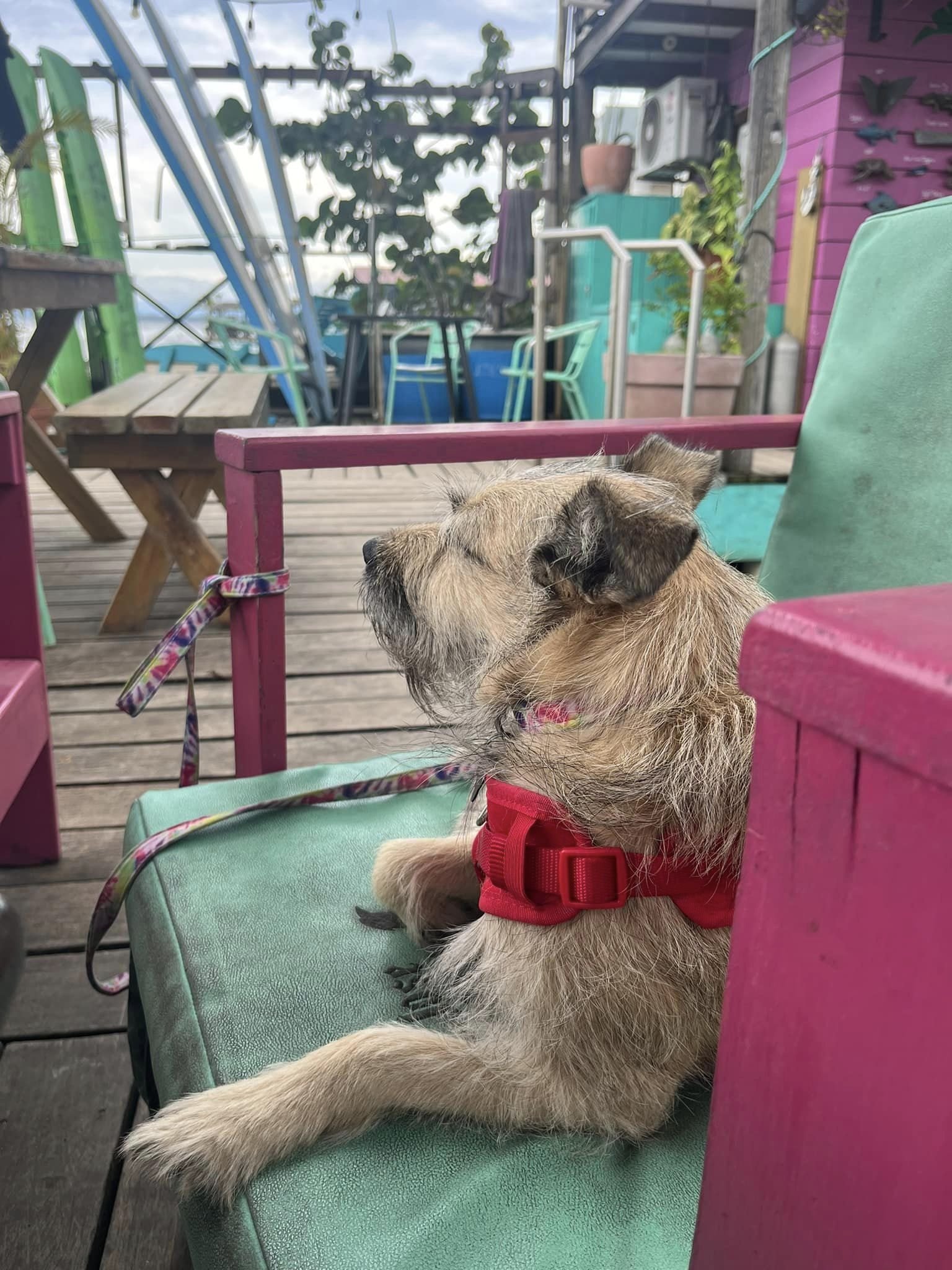 We made it! Last night we stayed it a super cute airbnb in Casco Antiguo - the historic part of Panama City - with a roof top pool. Cooked and shared dinner with our friend Felipe. Enjoyed breakfast on the balcony. Walked the dog in a historic park. And flew to Bocas Del Toro. Shady was happy to be on Dean’s lap the entire flight. We lunched at one of our favorite places before checking into our first efficiency suite - for four days.